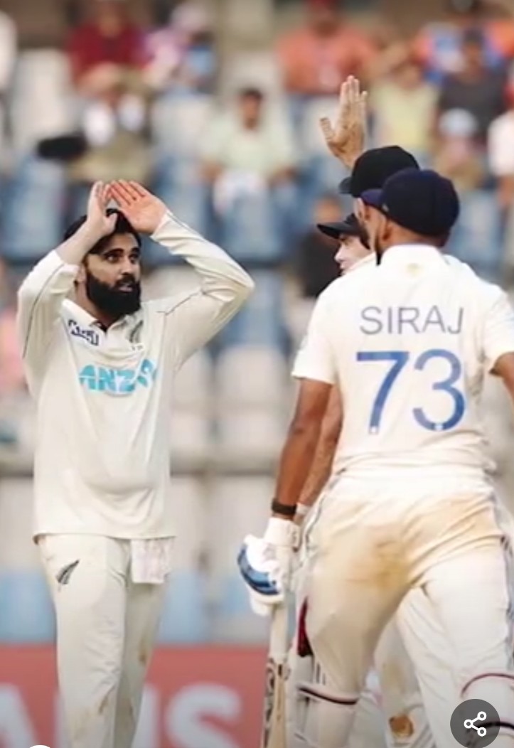 एक वक्त टीम इंडिया का स्कोर 78 रन पर एक विकेट था। यहां से छह रन बनाने में टीम इंडिया ने तीन विकेट गंवा दिए। पहले एजाज पटेल ने लगातार दो गेंद पर यशस्वी जायसवाल और मोहम्मद सिराज को आउट किया। फिर विराट कोहली रन आउट हो गए। यशस्वी जायसवाल 30, रोहित शर्मा 18, विराट कोहली 4 और मोहम्मद सिराज शून्य पर आउट हुए। एजाज पटेल को 2 और मैट हेनरी को 1 विकेट मिला। कोहली रन आउट हुए। शुभमन गिल और ऋषभ पंत नाबाद लौटे।