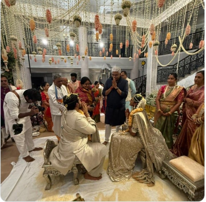 पीवी सिंधु ने अब तक इंस्टाग्राम पर शादी की तस्वीरें शेयर नहीं की हैं। हालांकि, केंद्रीय मंत्री गजेंद्र सिंह शेखावत ने नए जोड़े के साथ तस्वीर शेयर की है। तस्वीर में सिंधु और वेंकट बैठे हुए नजर आ रहे हैं। सिंधु ने गोल्डन क्रीम कलर की साड़ी पहनी हुई है। कई आभूषण भी पहने हुए हैं। दोनों हाथ जोड़कर गजेंद्र सिंह का अभिवादन कर रहे हैं।