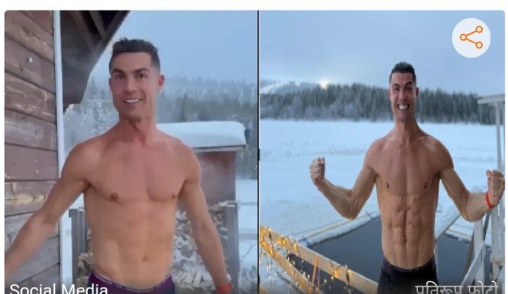 दरअसल, रोनाल्डो अपनी पार्टनर जॉर्जिना और पांच बच्चों के साथ फिनलैंड में हैं। उन्होंने यहीं क्रिसमस मनाया। रोनाल्डो ने अपना एक वीडियो शेयर किया है जिसमें वह शर्टलेस नजर आ रहे हैं। इस दौरान उन्होंने सिर्फ छोटे शॉट्स पहने हुए हैं और वह -20 डिग्री सेल्सियस और उनके सामने के पूल का तापमान-4 डिग्री सेल्सियस है। रोनाल्डो इसी ठंड में पूल में उतर गए।