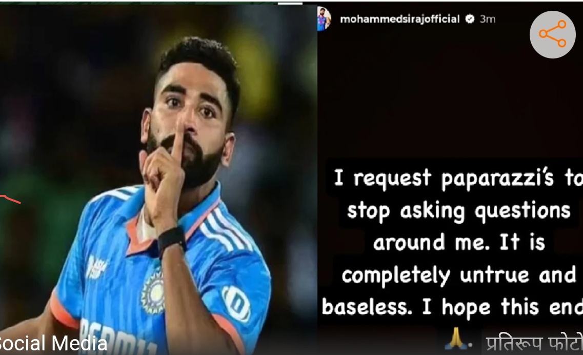 इन सभी बातों के बीच मोहम्मद सिराज ने भी इस पर अपनी चुप्पी तोड़ी है। उन्होंने अपने इंस्टाग्राम पर मीडिया से हाथ जोड़कर अनुरोध किया है कि वो इस तरह के सवाल ना पूछें और सारी बातें निराधार हैं। उन्होंने लिखा कि मैं पैपराजी से अनुरोध करता हूं कि वो मेरे आस-पास सवाल ना पूछें। ये पूरी तरह से झूठ और निराधार है। मुझे उम्मीद है कि ये खत्म हो जाएगा।