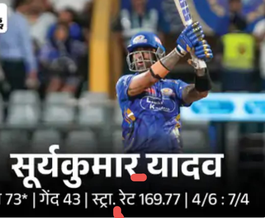 मुंबई की पारी का आखिरी ओवर डाल रहे दुष्मंथा चमीरा ने 21 रन खर्च किए। सूर्या और नमन की जोड़ी ने इस ओवर में दो छक्के और दो चौके लगाए। इस तरह मुंबई ने 20 ओवर में 5 विकेट पर 180 रन बना लिए। सूर्या 73 और नमन धीर 24 रन पर नाबाद लौटे।