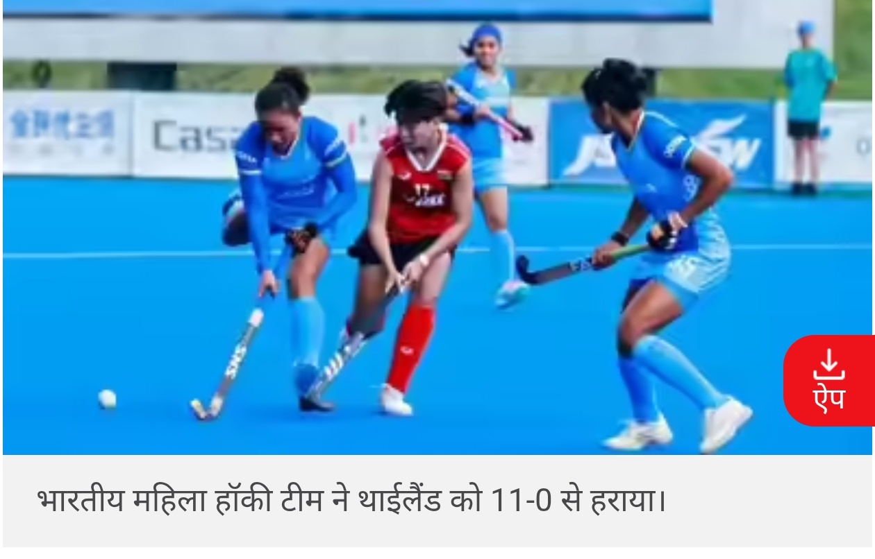 हांगझोऊ (चीन): उदिता दुहान और ब्यूटी डुंग डुंग के दो-दो गोल की मदद से भारत ने महिला एशिया कप हॉकी टूर्नामेंट में शुक्रवार को थाईलैंड को 11-0 से हराकर अपने अभियान की शानदार शुरुआत की। उदिता ने 30वें और 52वें मिनट में पेनल्टी कॉर्नर पर जबकि डुंग डुंग ने 45वें और 54वें मिनट में गोल किए। इन दोनों के अलावा भारत की तरफ से मुमताज खान (सातवें मिनट), संगीता कुमारी (10वें), नवनीत कौर (16वें), लालरेम्सियामी (18वें), थौदाम सुमन देवी (49वें), शर्मिला देवी (57वें) और रुताजा दादासो पिसल (60वें) ने गोल दागे।वर्तमान में विश्व में नौवें स्थान पर काबिज भारत ने 30वें स्थान पर काबिज थाई टीम के खिलाफ पूल बी के मैच में हाफ टाइम तक 5-0 की बढ़त बना ली थी। इस टूर्नामेंट में आठ टीमें भाग ले रही हैं जिन्हें दो पूल में बांटा गया है। दोनों पूल से शीर्ष पर रहने वाली दो टीमें सुपर 4 चरण के लिए क्वालीफाई करेंगी। सुपर 4 की शीर्ष दो टीमें 14 सितंबर को होने वाले फाइनल में खेलेंगी।