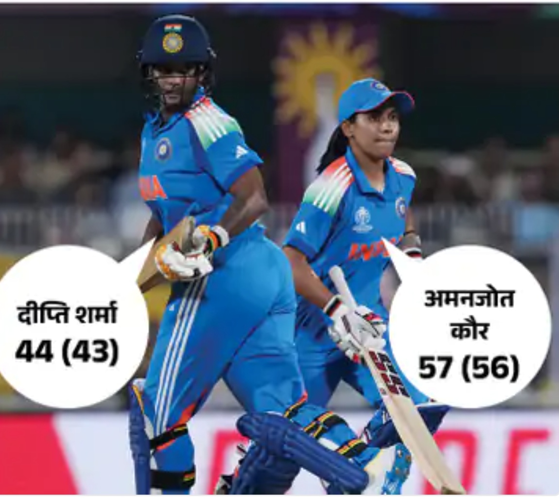 टीम इंडिया ने 124 रन पर 6 विकेट गंवा दिए थे। यहां दीप्ति शर्मा (53) और अमनजोत कौर (57 रन) ने शतकीय साझेदारी कर टीम का स्कोर 250 के पार पहुंचा दिया।
