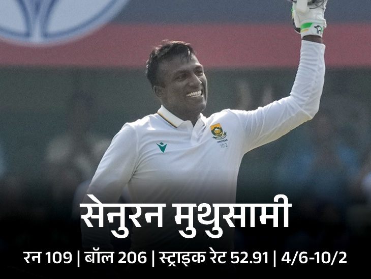 साउथ अफ्रीका ने बरसापारा स्टेडियम में शनिवार को टॉस जीतकर बैटिंग चुनी थी। टीम से सेनुरन मुथुसामी ने 109 और मार्को यानसन ने 93 रन बनाए। ट्रिस्टन स्टब्स ने 49 और कप्तान टेम्बा बावुमा ने 41 रन की पारी खेली।