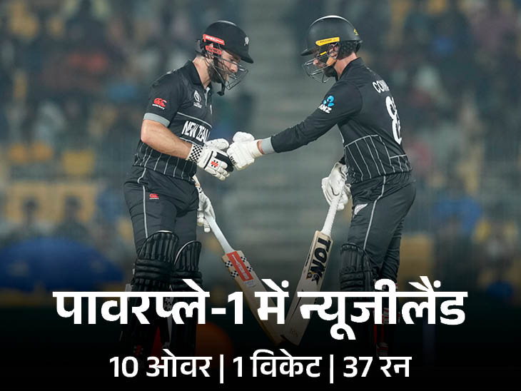 246 रन के टारगेट का पीछा करने उतरी कीवी टीम की शुरुआत खराब रही। टीम ने तीसरे ही ओवर में रचिन रवींद्र का विकेट गंवा दिया। लेकिन उनके विकेट के बाद टीम ने संभल कर बैटिंग की। केन विलियमसन ने फिर डेवोन कॉन्वे के साथ संभलकर बैटिंग की और टीम का कोई और विकेट नहीं गिरने दिया। टीम ने 10 ओवर के बाद एक विकेट के नुकसान पर 37 रन बनाए।