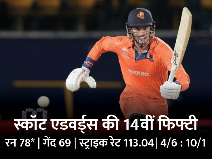 - चौथा: रासी वान डर डसन- 4 रन: 12वें ओवर की दूसरी बॉल पर रूलोफ वान डर मेर्व ने आर्यन दत्त के हाथों कैच कराया।