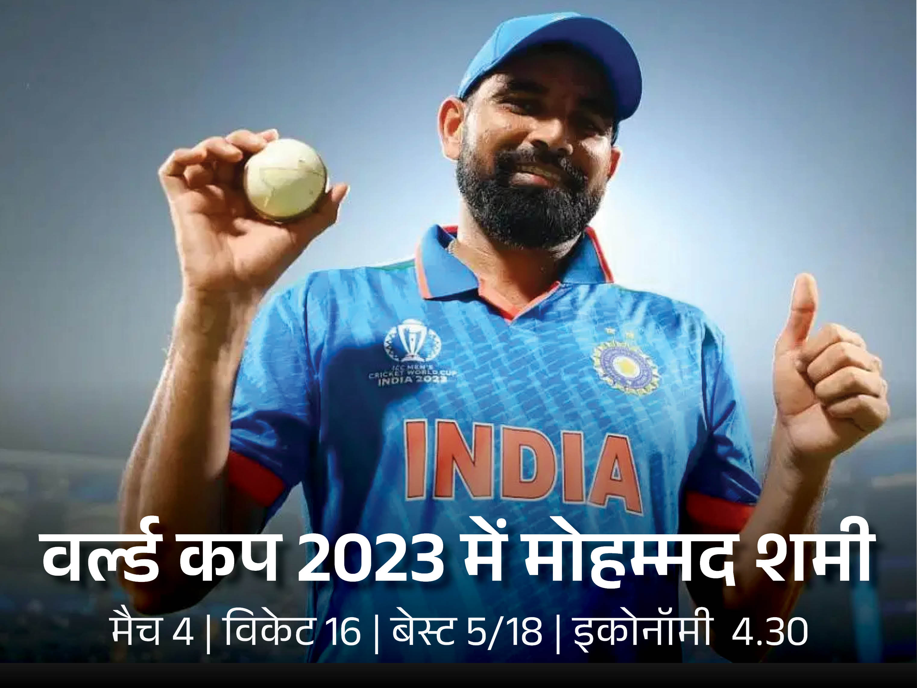 मोहम्मद शमी इस वर्ल्ड कप में अब तक 4 मैचों में 16 विकेट ले चुके हैं। शमी ने शुरुआती मैच नहीं खेले, इसके बाद 22 अक्टूबर को शमी ने धर्मशाला में न्यूजीलैंड के खिलाफ पहला मैच खेला, जिसमें उन्होंने 5 विकेट लिए।
