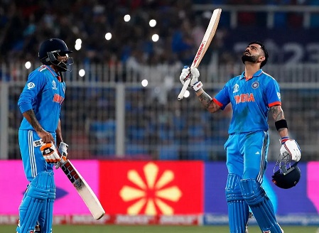 विराट कोहली के लिए अभी तक ये टूर्नामेंट काफी शानदार रहा है। वह 8 मैचों में 543 रन बना चुके हैं। अभी तक वह भारत के लिए इस वर्ल्ड कप में सर्वाधिक रन बना चुके हैं। इस साल उन्होंने वर्ल्ड कप में 2 शतक भी लगाए हैं। ऐसे में अब उनकी नजर तीसरे शतक पर रहने वाली है। वहीं, वनडे वर्ल्ड कप में ये पहला मौका है जब कोहली ने एक सीजन में 500 से अधिक रन बनाए हैं।
