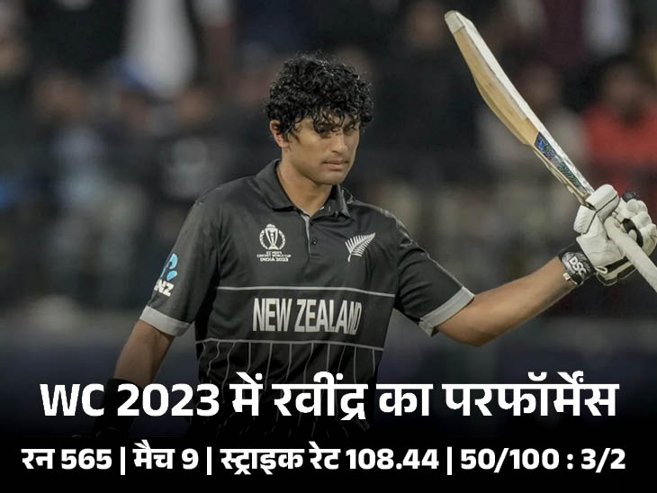 रचिन के वर्ल्ड कप 2023 के 9 मैच के बाद 565 रन हैं। भारत के विराट कोहली और साउथ अफ्रीका के क्विंटन डी कॉक के बाद टॉप-3 रन बनाने वालों की लिस्ट में तीसरे नंबर पर हैं।