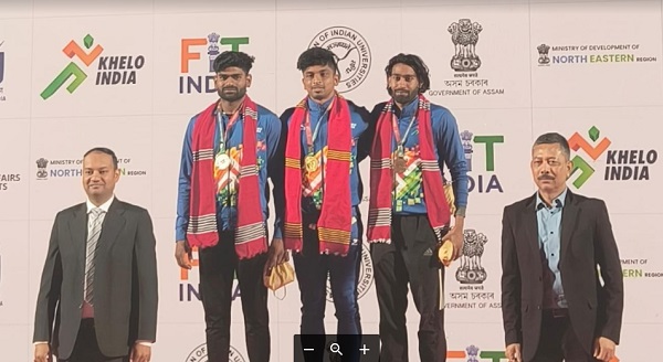 आज दिनांक 27.02.2024 को एथेलेटिक्स के पुरूष वर्ग में लांग जम्प इवेन्ट के मुकाबले आयोजित किये गये। इस मुकाबले में अकादमी के खिलाड़ी कृष्णा शर्मा ने अपनी शारीरिक दक्षता का अच्छा प्रदर्शन कर 7.47 मी. की छलांग लगाकर रजत पदक अपने नाम किया। प्रतियोगिता में कृष्णा चंडीगढ यूनिवर्सिटी का प्रतिनिधित्व कर रहे हैं। यूनिवर्सिटी ऑफ मद्रास के खिलाड़ी विष्णु एम. ने 7.63 मी. की लम्बी छलांग लगाते हुये प्रथम स्थान और पंजाब युनिवर्सिटी के खिलाड़ी जगरूप सिहं ने 7.30 मी लंबी छलांग लगाकर तृतीय स्थान प्राप्त किया।