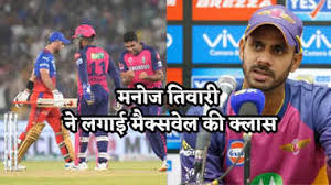 इस हार के साथ अब बेंगलुरु आईपीएल 2024 से भी बाहर हो गई। टॉस गंवाकर पहले बल्लेबाजी करते हुए आरसीबी ने राजस्थान को 173 रन का टारगेट दिया। राजस्थान ने 19 ओवर में यह टारगेट चेज कर लिया। आरसीबी लगातार 6 मैच जीतकर प्लेऑफ के लिए क्वालीफाई हुई थी। हालांकि वह एलिमिनेटर में राजस्थान को हराने में नाकाम रहे। वहीं यह सीजन बेंगलुरु के स्टार खिलाड़ी ग्लेन मैक्सवेल के लिए बिल्कुल अच्छा नहीं रहा। एलिमिनेटर में भी वह गोल्डन डक पर आउट हो गए। अब उनपर पूर्व भारतीय खिलाड़ी मनोज तिवारी जमकर बरसे हैं।